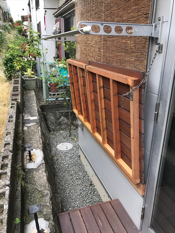 目的は、家の周りを回れるようにしておく事。もう一つは、長さあるものを干せる様にすること。