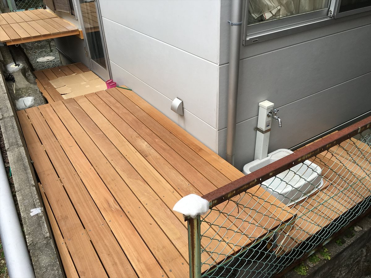 デッキ奥側が形になってきましたが、手前部分はこれから。